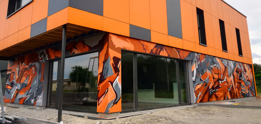 Premiers supports visibles d'un bâti, les façades sont toujours idéales pour apporter votre identité visuelle. Ainsi peinte, votre façade devient une carte de visite immanquable, plus personne ne passera à côté sans vous trouver !!