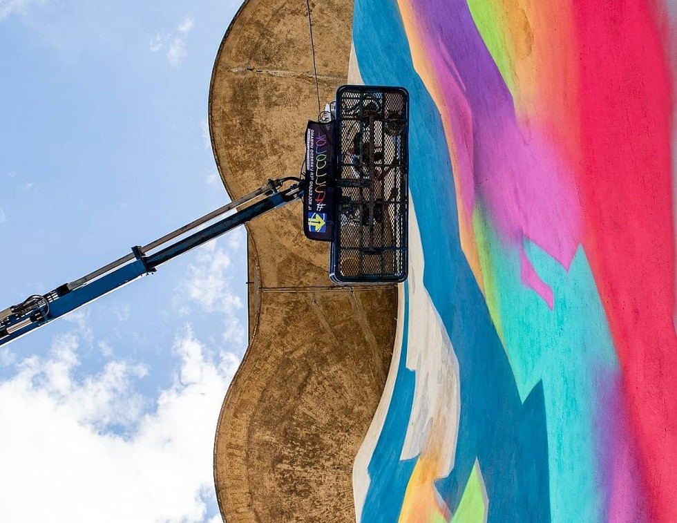 Painting a multi-faceted and rounded support, visible over 360° and 45 meters high, is in itself a technical challenge.